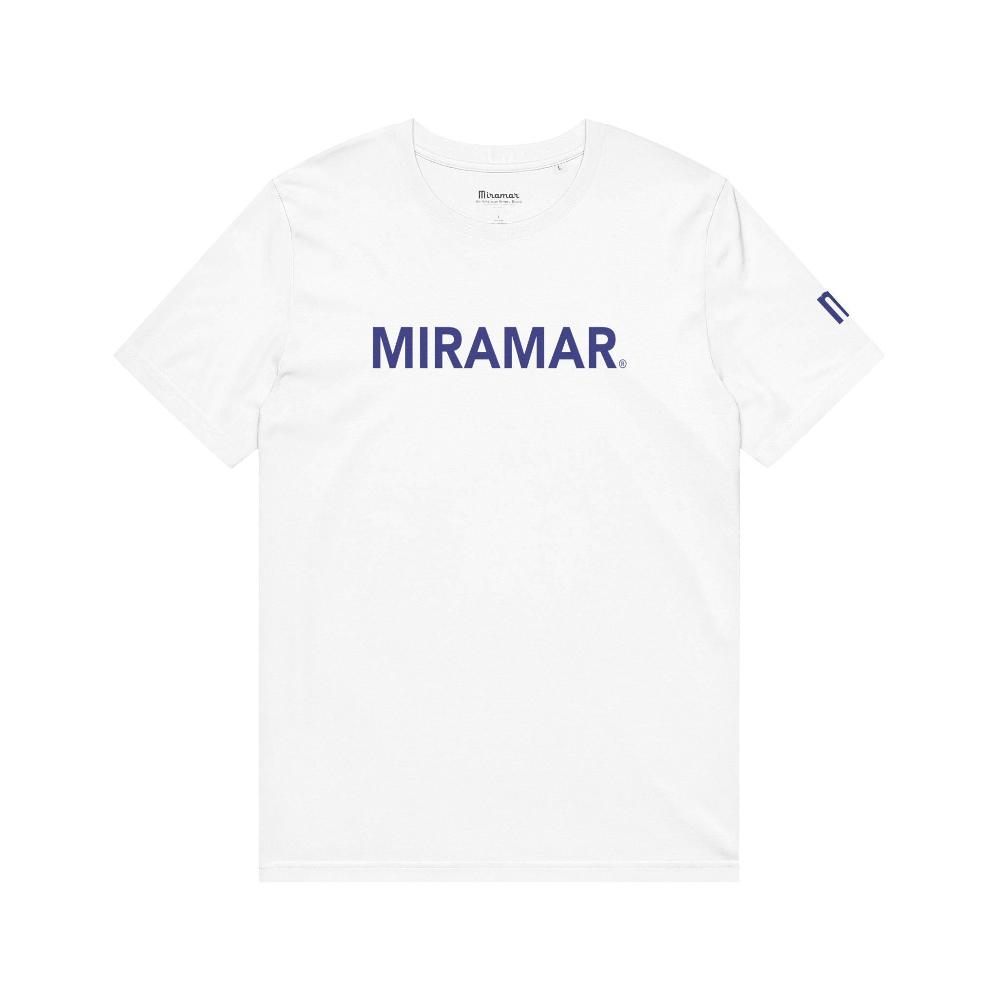 The MIRAMAR® Avenir Minimalist Logo T‑Shirt is simple, breathable, and quietly confident — this organic cotton tee carries the calm of shoreline mornings. The clean white canvas is stamped with a restrained navy wordmark across the chest and a subtle tab on the sleeve, giving a minimalist, coastal-club feel. It sits comfortably against the skin thanks to soft ring-spun combed cotton and a regular cut that layers easily under jackets or stands alone on warm days. Wear it to slowly sip coffee at dawn, stroll boardwalks, or meet friends for an easy evening; it reads like someone who values quality, sustainability, and low-key style.