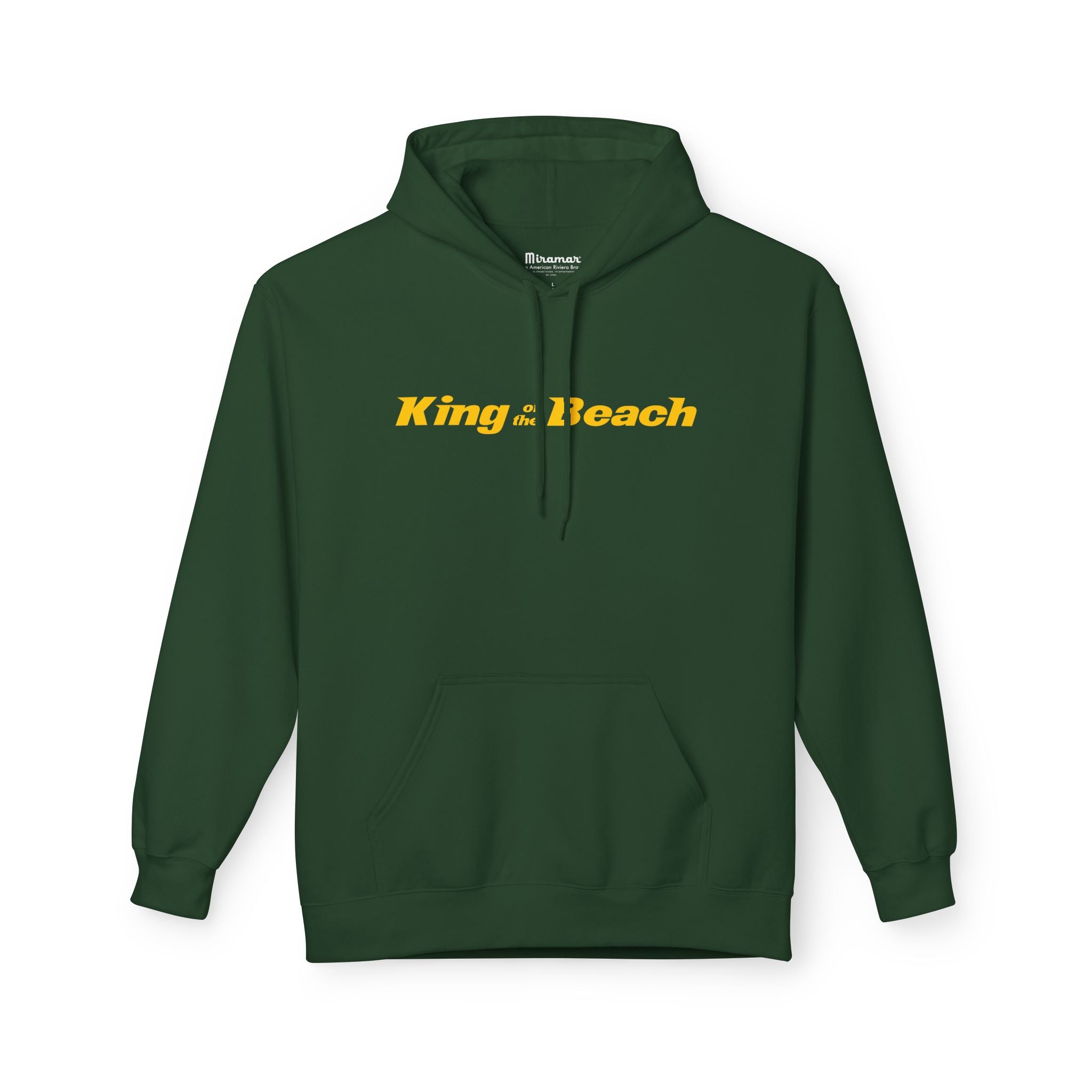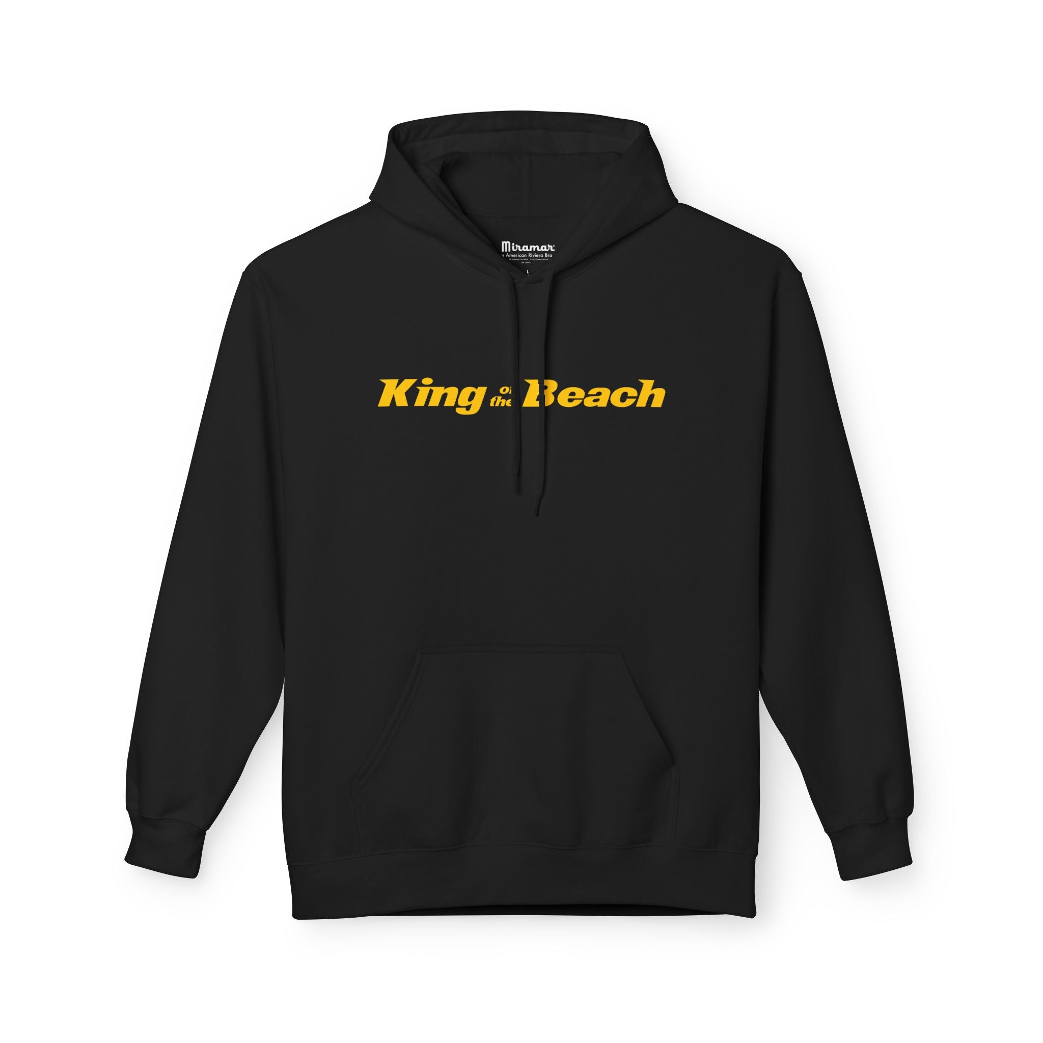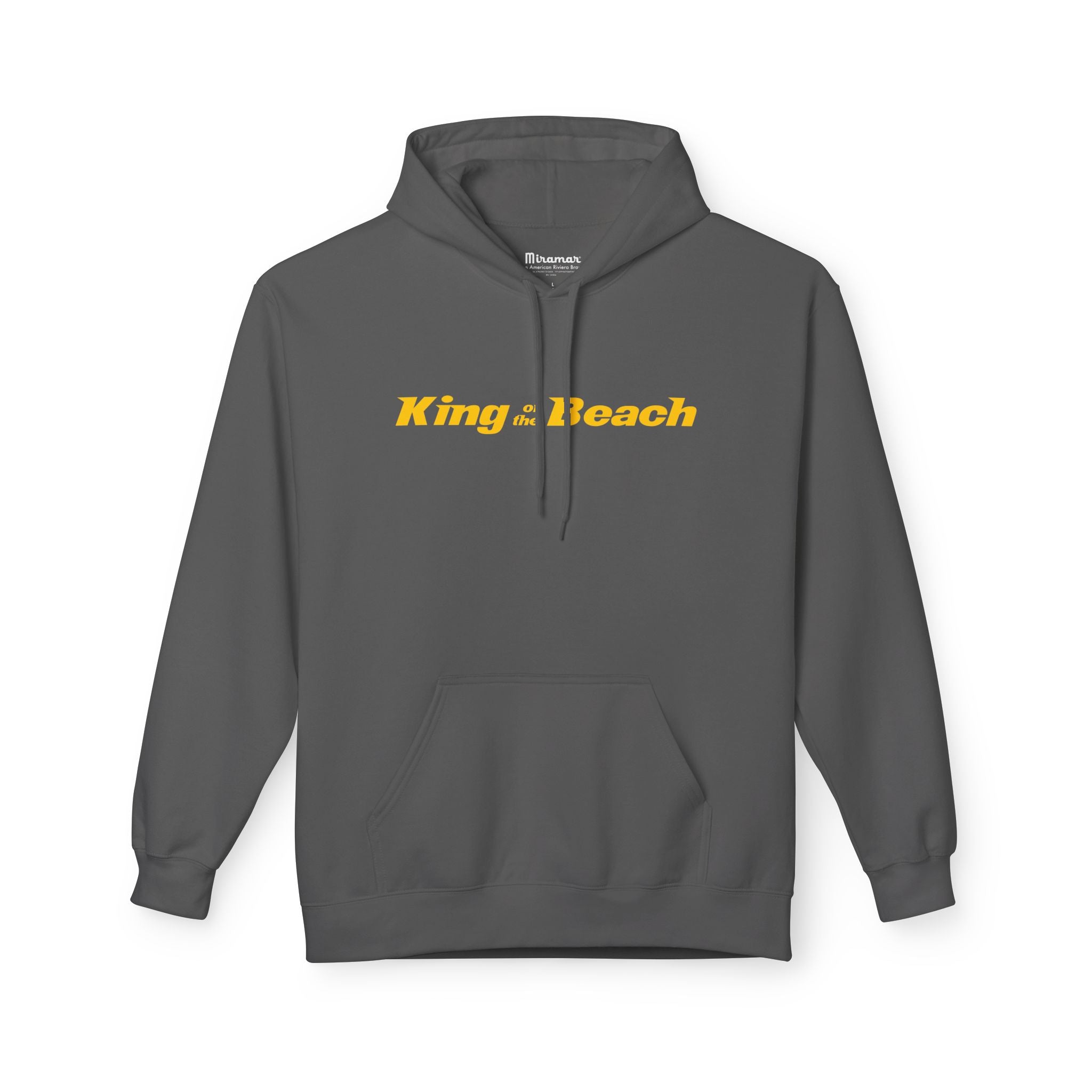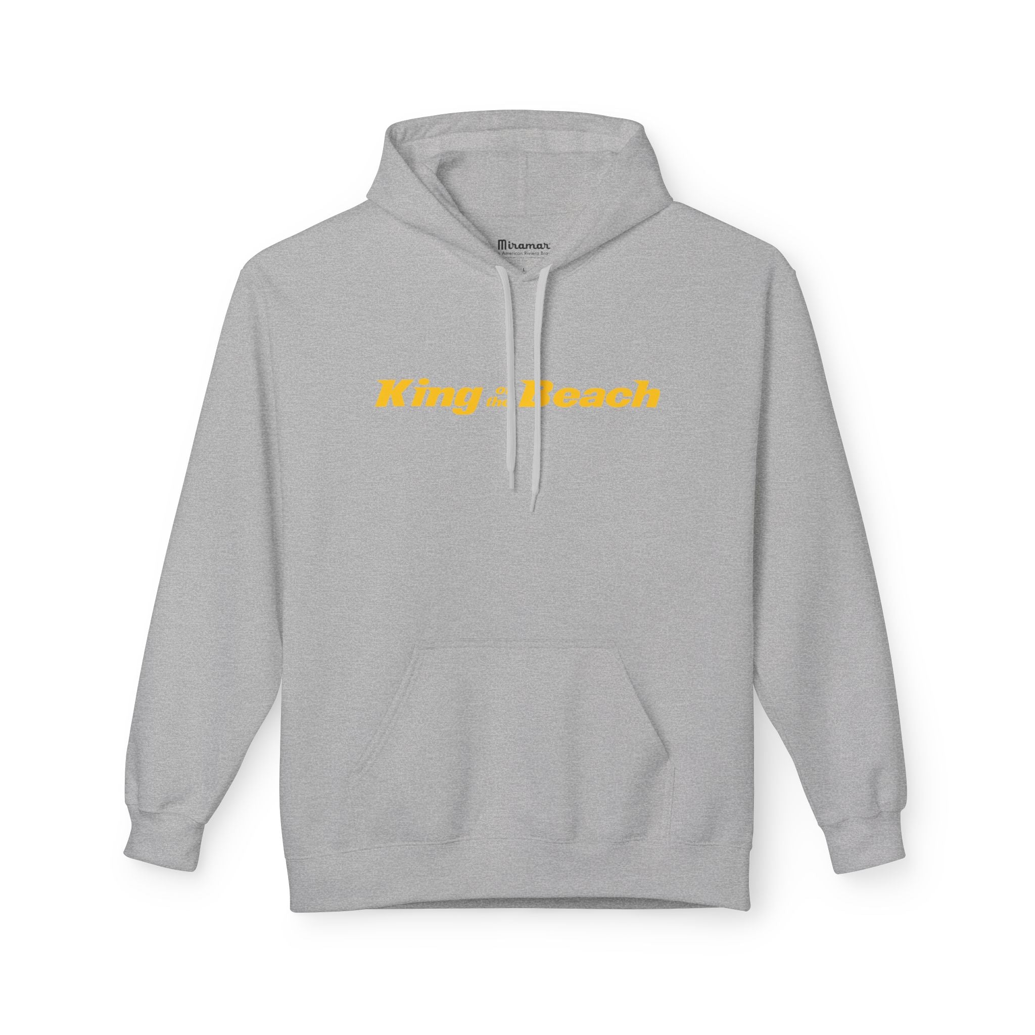 Our King of the Beach® Crown Fleece Hoodie by MIRAMAR® is our highest level of quality. This midweight MIRAMAR® Crown Fleece hoodie brings a quiet, beachside confidence to everyday wear. Lightweight enough for cool dawn walks, yet warm enough for bonfire nights, it pairs a clean white canvas with sunlit gold lettering and a small crowned emblem. The dropped shoulders and classic fit create a relaxed silhouette that layers easily over tees. Thoughtful touches — a lined two-piece hood and roomy pouch pocket — add comfort without fuss. Sustainably made and ethically produced, it’s for people who care about craftsmanship as much as the moments they wear it through: sandy mornings, late-night drives, and slow afternoons with friends.