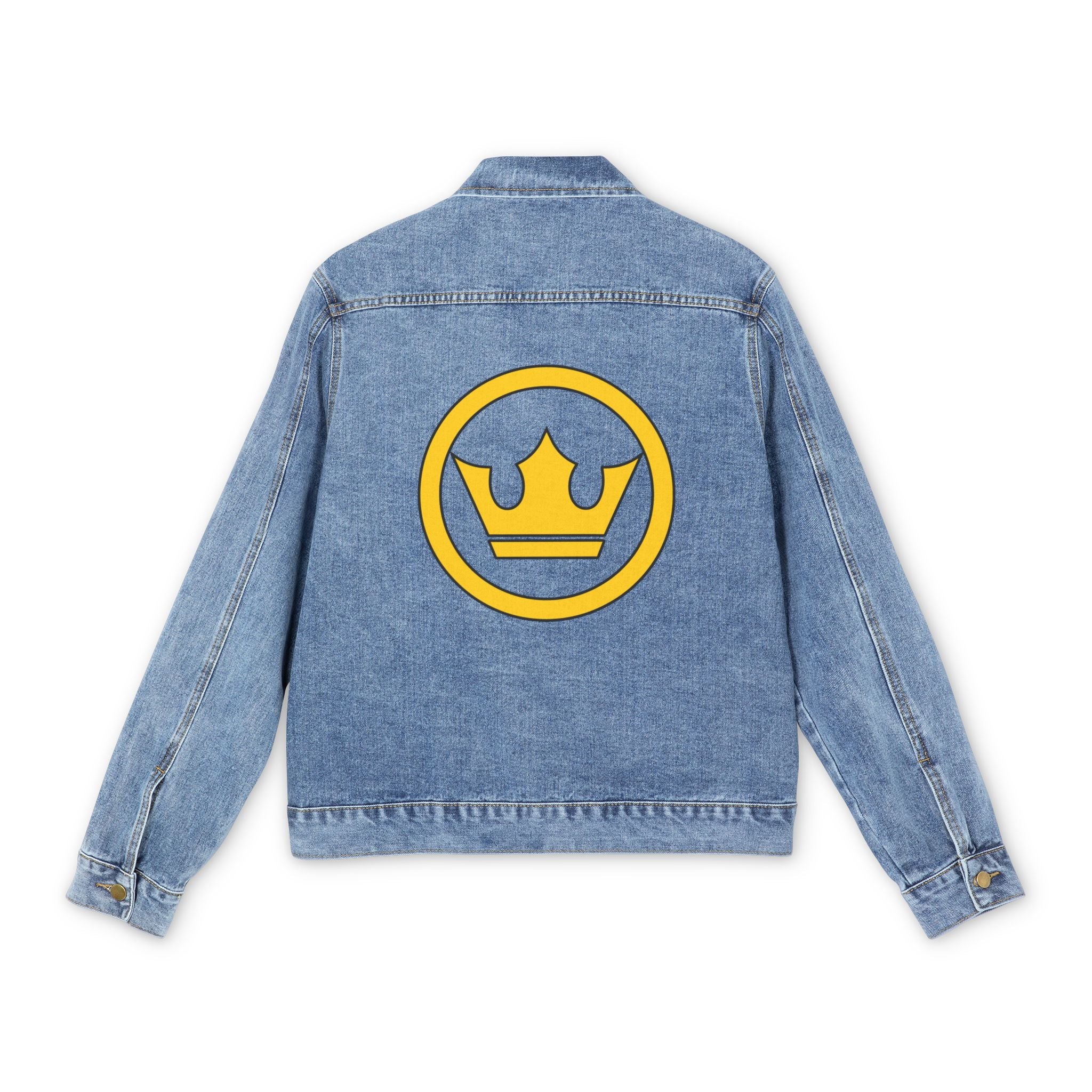 This Men's Miramar® "Sinjin"Denim Jacket is a legendary piece from Miramar®. wit since 1980. Featuring a Golden Crown design, perfect for roaming the beach in style on a cold fall night. Worn by Olympian and Beach legend, Sinjin Smith, it exudes a stylish and retro vibe. This jacket is relevant for those who love beach life and casual cool style, perfect for fall bonfires and beach outings.